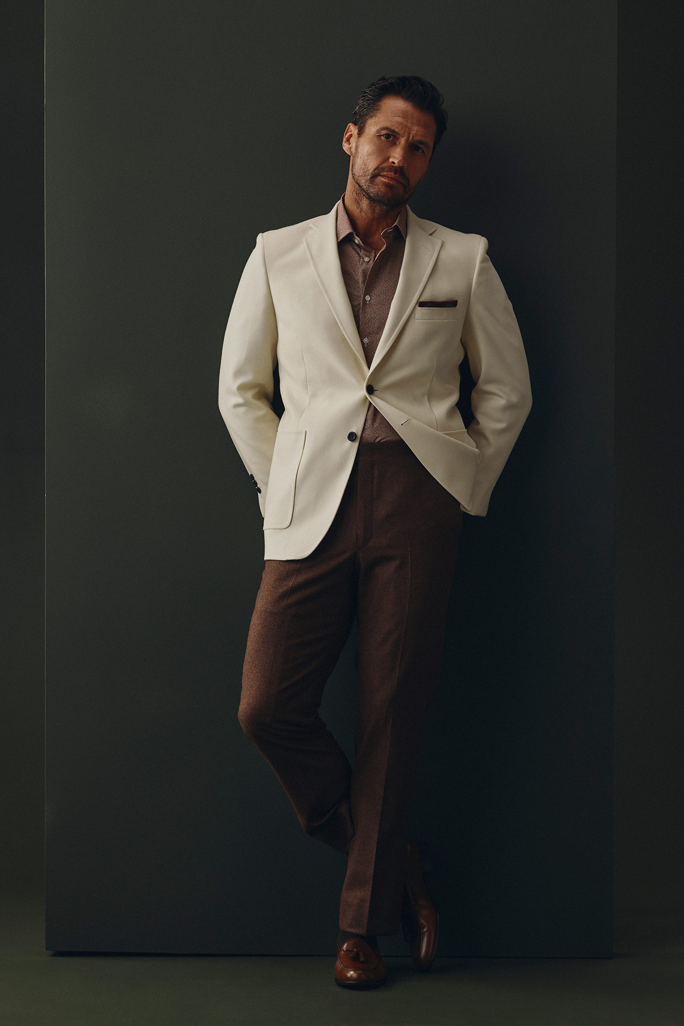 Custom Cream Flannel Trouser -  Holland & Sherry
